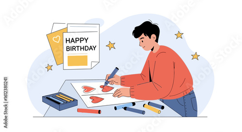 Happy children playing with robot toy or programming smart robot, flat vector illustration. Robotics school, kid engineering club, robotic class.