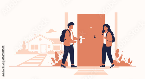 Happy couple celebrating housewarming party together after moving to new home, flat vector illustration. Living room interior with new furniture.