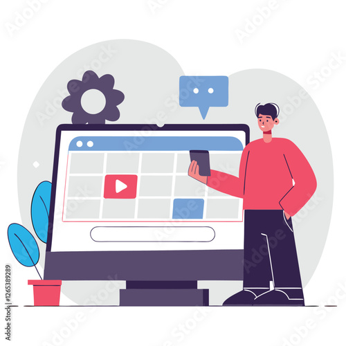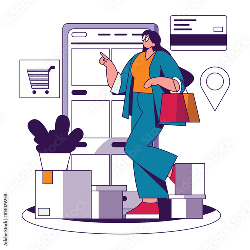 Happy couple choosing ceramic tiles in construction shop, flat vector illustration. Home improvement, home renovation or remodeling.