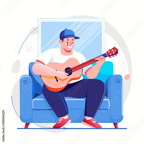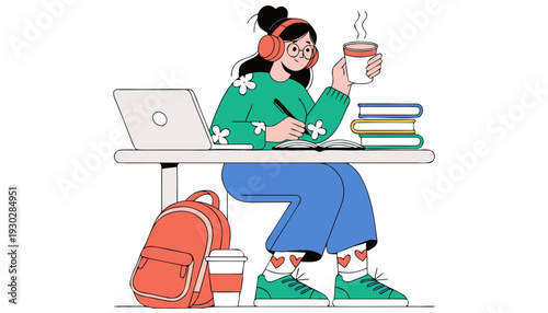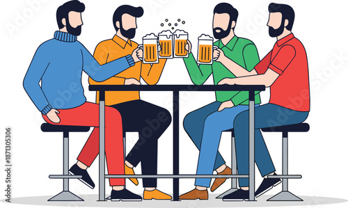 Happy young couple sitting at table in cafe, enjoying coffee drink and talking to each other, flat vector illustration. Colleagues, friends taking coffee break.