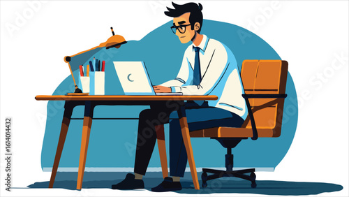 Happy young couple sitting at table in cafe, enjoying coffee drink and talking to each other, flat vector illustration. Colleagues, friends taking coffee break.