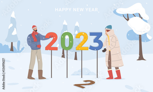 Happy couple greeting each other with open arms, flat vector illustration. Happy wife meeting her husband coming back home from business trip. Homecoming.