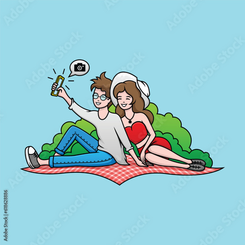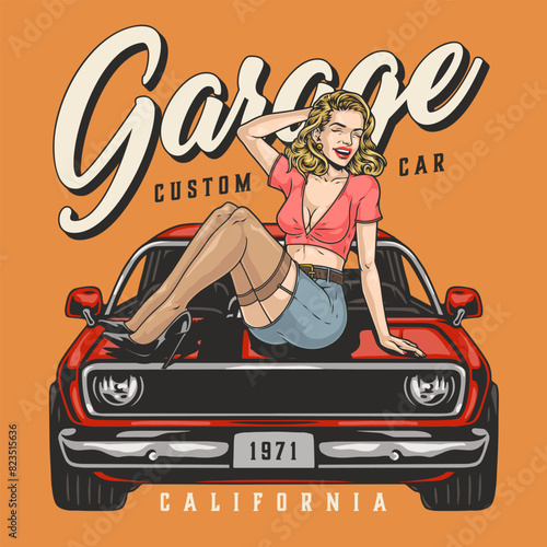 Happy couple in a car driving away. Vector illustration in retro pop art style. Love romance concept.