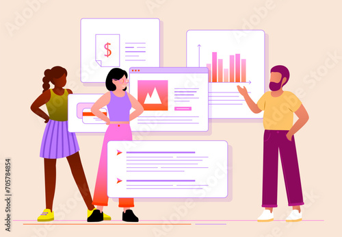 Happy couple using self-service fast food kiosk vector illustration isolated on white background