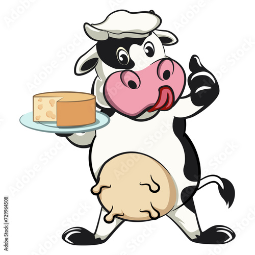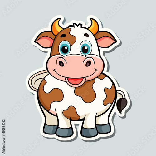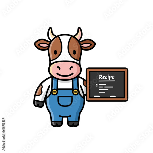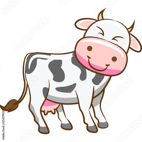 Happy spotted cow cartoon character holding milk pack vector. Cute funny farm animal loving fresh dairy drink isolated on white background