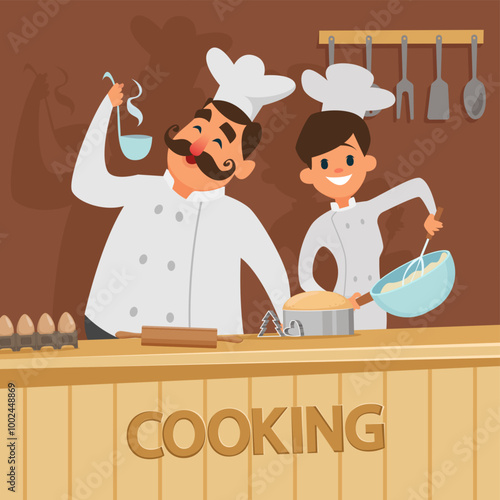 Happy father and daughter enjoying painting at home, flat vector illustration. Dad and kid having fun spending time together. Parent child relationship, fatherhood and parenting. Father day activity.