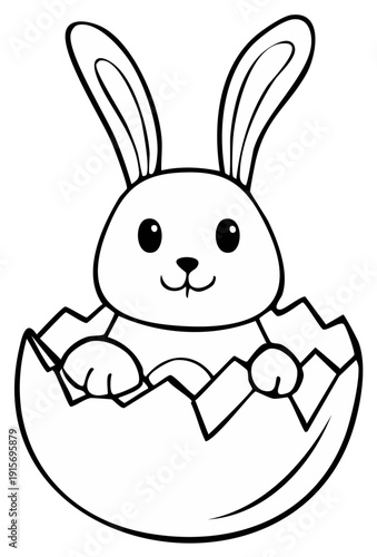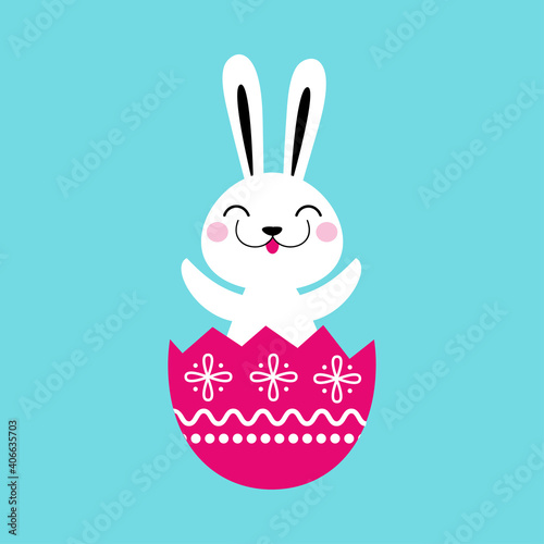 Easter bunny vector. Cute rabbit cartoon icon. Happy fluffy hare sitting in egg shell illustration isolated on white background. Animal character for spring holiday greeting card design