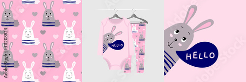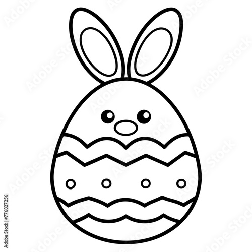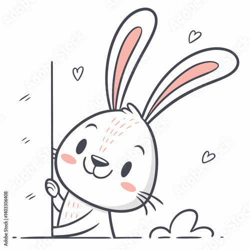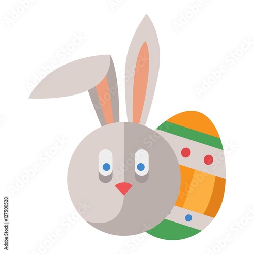 Easter bunny vector. Cute rabbit cartoon icon. Happy fluffy hare peeping out from behind painted egg illustration isolated on white background. Animal character for spring holiday greeting card design