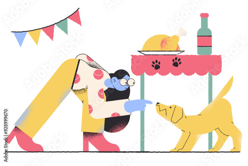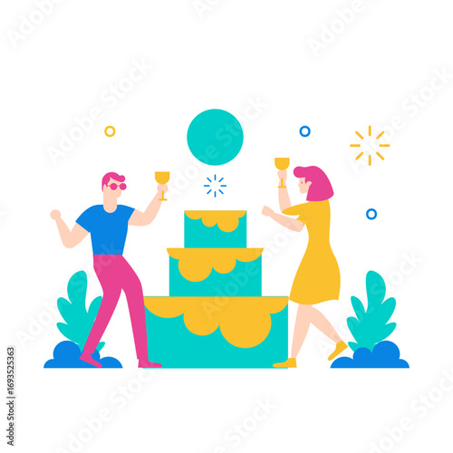 Micro characters carrying big Easter basket, painted egg, lighting candle on huge Easter cake with icing, vector flat illustration. Spring holiday celebration concept for web banner, website page etc.