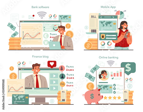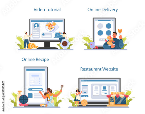 Video call landing page design, website banner template set, flat vector illustration. Happy elderly couple talking to each other over video call using mobile phones.