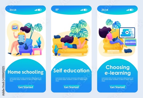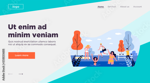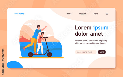 Nordic walking. Happy elderly people walking with nordic poles in city park. Mobile app screens. Vector banner template for website and mobile development. Web site and UI design illustration.