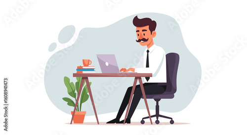 Happy businessman winner holding gold trophy cup above his head, flat vector illustration. Successful employee, the best office worker getting award. Career growth, business achievements, success.