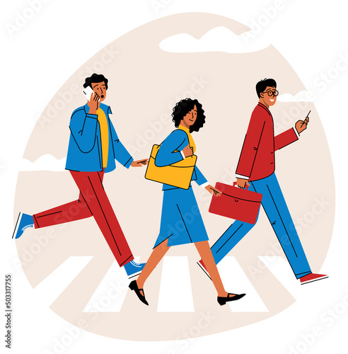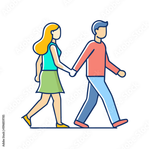 Happy family father, mother and son walking together, vector flat style design illustration isolated on white background. Parenting, motherhood, fatherhood, parenthood, parent-child relationship.