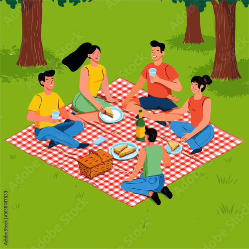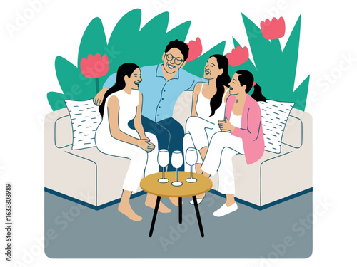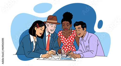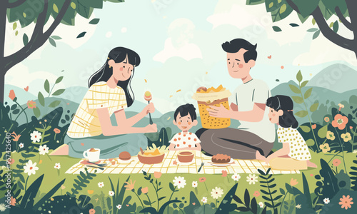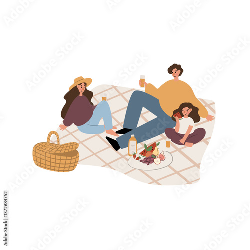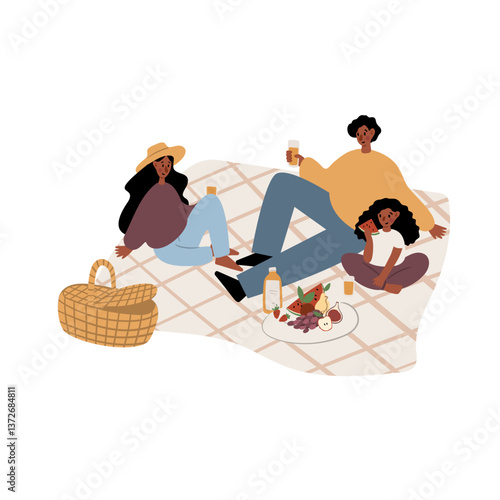 Happy family playing board game sitting on the rug, flat vector illustration. Parents with kids spending time together, playing tabletop game. Home leisure activities and entertainment.