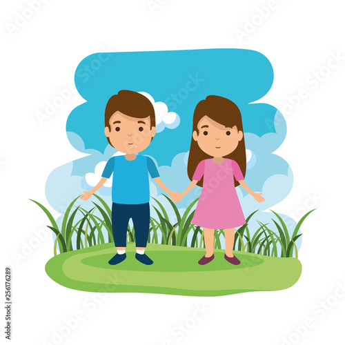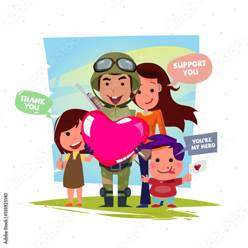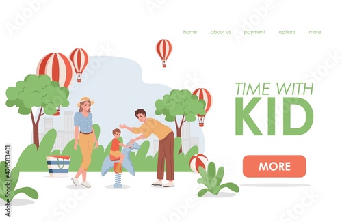 Happy family vector illustration. Father, mother and son walking in the park flat style design element.