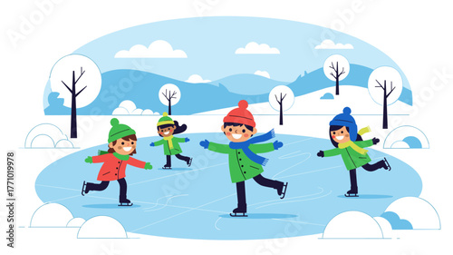 Happy family with two kids walking along fluffy clouds with umbrella, vector illustration in paper art craft style. Creative composition for International Day of Families greeting card, poster etc.
