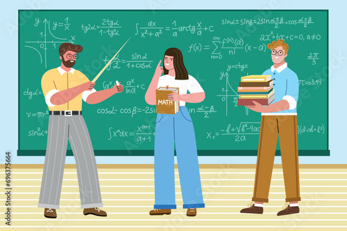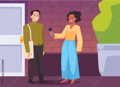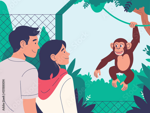 Happy family visiting oceanarium vector illustration. Mother and daughter, father and son enjoying view on marine animal at aquarium zoo museum scene