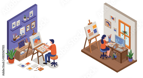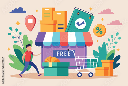 Vector illustration of happy family father, mother with two sons watching tv. Living room interior. Flat style design.