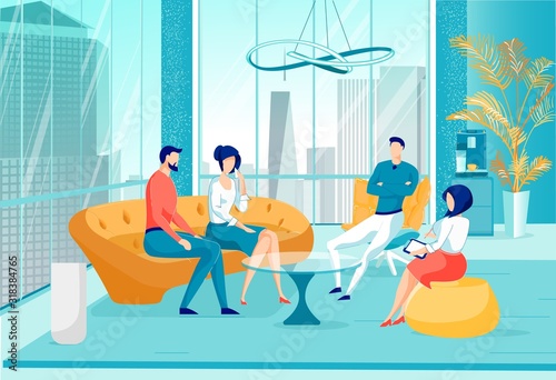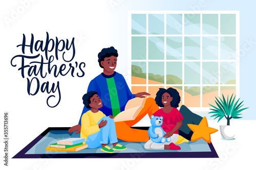 Happy family with kids enjoying travel in train sitting inside cabin with seats and window vector illustration. Cartoon parents and children passenger characters chatting having railway trip