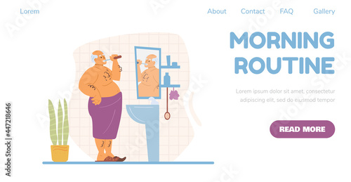 Happy funny young man taking shower in home bathroom singing and having fun vector illustration. Morning routine concept