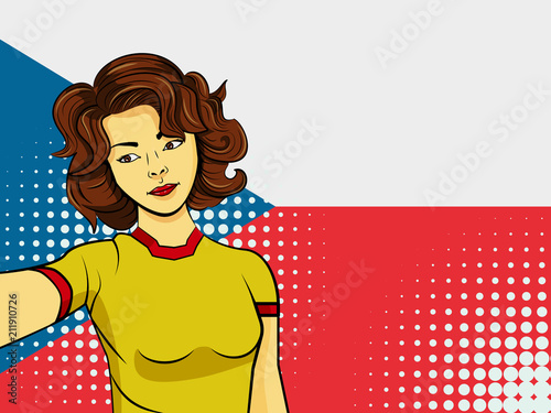 Happy girl hold a book in her hands. Vector illustration in comic retro pop art style. Back to school concept template.