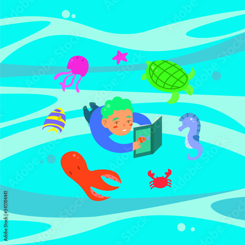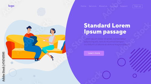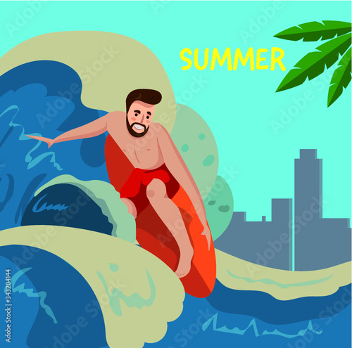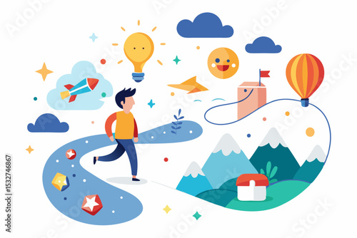 Happy girl making a snowman for christmas and new year holiday. Winter outdoor activities vector concept illustration. Winter games with snow. Web site design template.