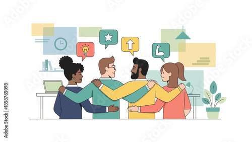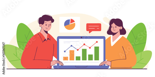 Happy smiling girl shopping for clothes, shoes on the internet using laptop computer, flat vector illustration. Online store, e-commerce, online ordering and delivery.