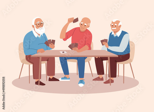 Happy grandfather and granddaughter reading book together, flat vector illustration. Grandpa with grandkid spending time together. Grandparent and grandchild relationships.
