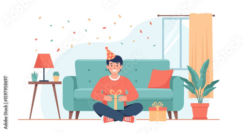 Happy grandfather and grandson fishing together, flat vector illustration. Grandpa with grandkid spending time together. Grandparent and grandchild relationships. Outdoor summer family activity.