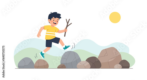 Happy grandmother and grandson playing with blocks together sitting on carpet, flat vector illustration. Grandma and grandkid spending time together. Grandparent and grandchild relationships.