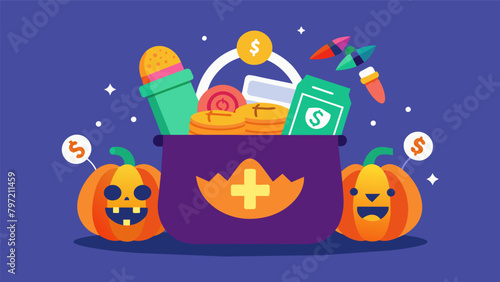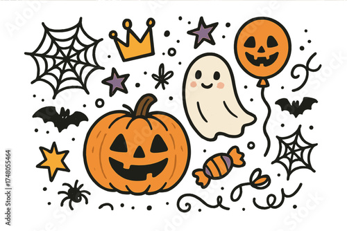 Huge scary pumpkin and happy male and female characters having fun, vector illustration. Happy Halloween concept for web banner, website page etc.