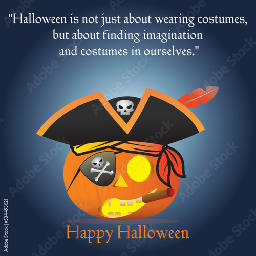 Happy Halloween vector flat illustration. Pumpkin, sugar skull mask, eyes, bats, candles, candy corns and witch hat. Halloween party concept for invitation card, poster, web banner, website page etc.