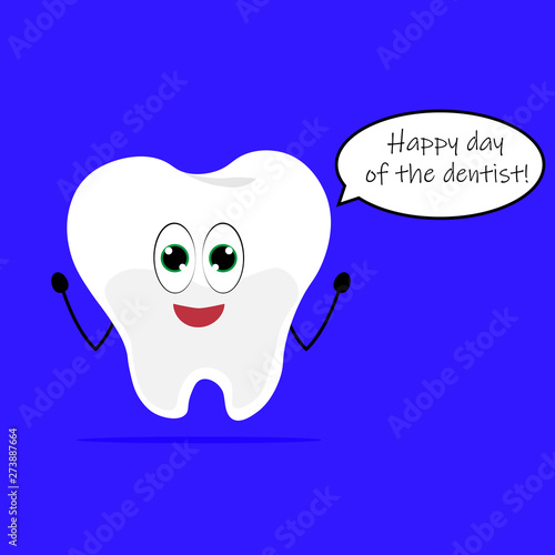 Happy healthy tooth jumping vector icon isolated on white background