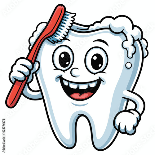 Happy healthy tooth vector icon isolated on white background