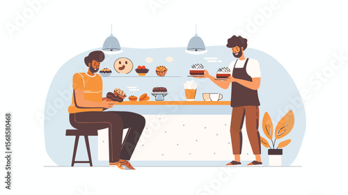 Happy loving couple celebrating Christmas and New Year sitting at table with festive dinner and drinks at home vector illustration. Romantic evening during winter holidays concept
