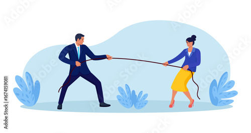 Happy male friends reconciliation handshake gesture flat vector. Young interracial man standing on bridge on both sides of the crack illustration. Multi-ethnic friendship, communication and trust