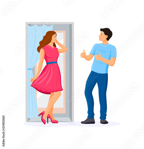 Happy man and woman characters vector icon isolated background.