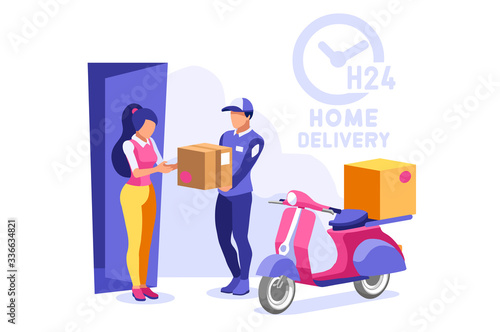 Huge gift box and car with ribbons, happy man, lucky prize winner with gift box, flat vector illustration. Raffle, lottery game winner, prize draw concept.