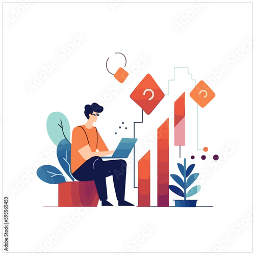Huge gift box and car with ribbons, happy man, lucky prize winner with gift box, flat vector illustration. Raffle, lottery game winner, prize draw concept.