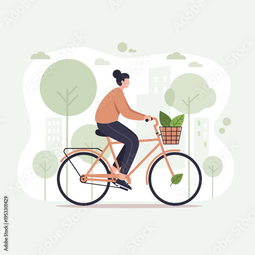 Happy man riding bicycle, flat vector illustration. Cyclist male cartoon character enjoying bike ride in the park. Eco friendly city transport. Active and healthy lifestyle.