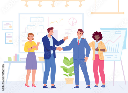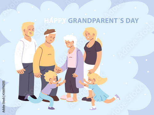 Happy mother day and childbirth holiday celebration vector. Family party concept. Married couple with children and grandparent with cake illustration. Parenthood and maternity