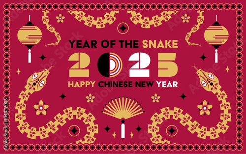 Happy new year greeting banner or poster over festive seamless pattern with colorful holiday accessories and sweets vector illustration design
