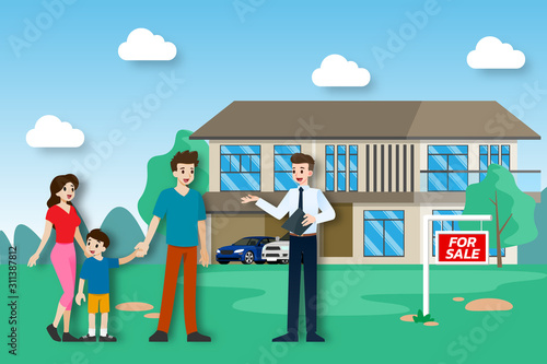 Happy people making snowman, playing snowballs, walking dogs in city park, flat vector illustration. Outdoor winter activities.