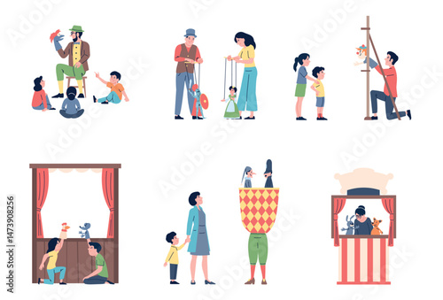 Happy new year vector poster. Excited cheerful people wearing santa hat having fun celebrating traditional winter holiday. Different tiny adults, disabled person and children over letters design