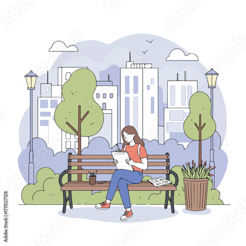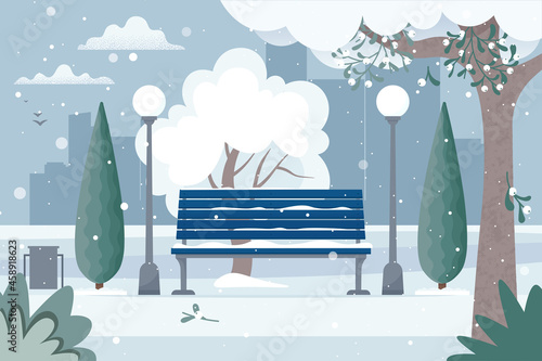 Happy people sledding, playing snowballs in city park, flat vector illustration. Winter fun, outdoor activities.