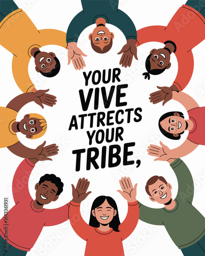 Happy positive diverse people of different age and social status standing in circle, looking up and waving hands gesturing ok, like, hi top view cartoon vector illustration. Unity and togetherness