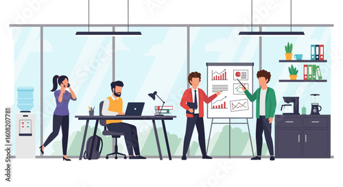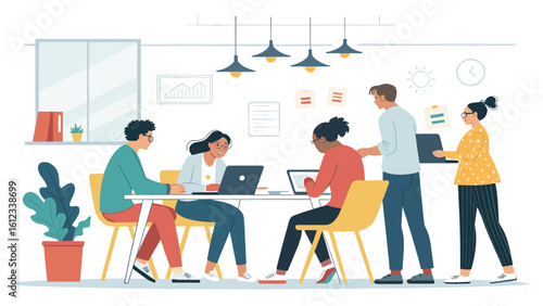 Happy passengers with luggage at the airport check in counter, flat vector illustration. People checking in for valid travel documents such as tickets, visa, passport.