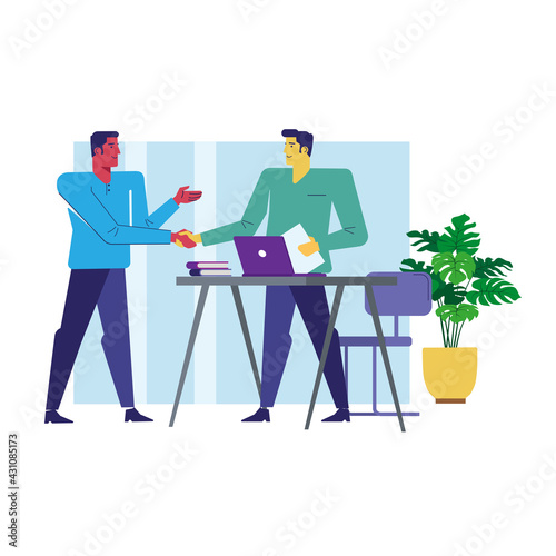 Happy young people sitting at table, enjoying coffee to go and talking to each other, flat vector illustration. Romantic couple spending time together. Coffee break. Love. Relationship.