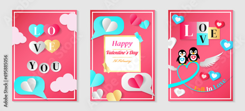 Happy valentine day greeting card floral square templates isolated set. Social media post, mobile app, banner design with creative heart ornament vector illustration