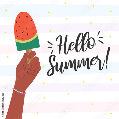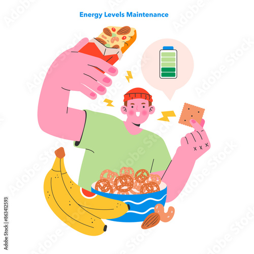 Happy woman customer advertising fastfood order mobile digital service vector illustration. Cheerful excited customer holding smartphone rejoicing benefits of trendy online food delivery app